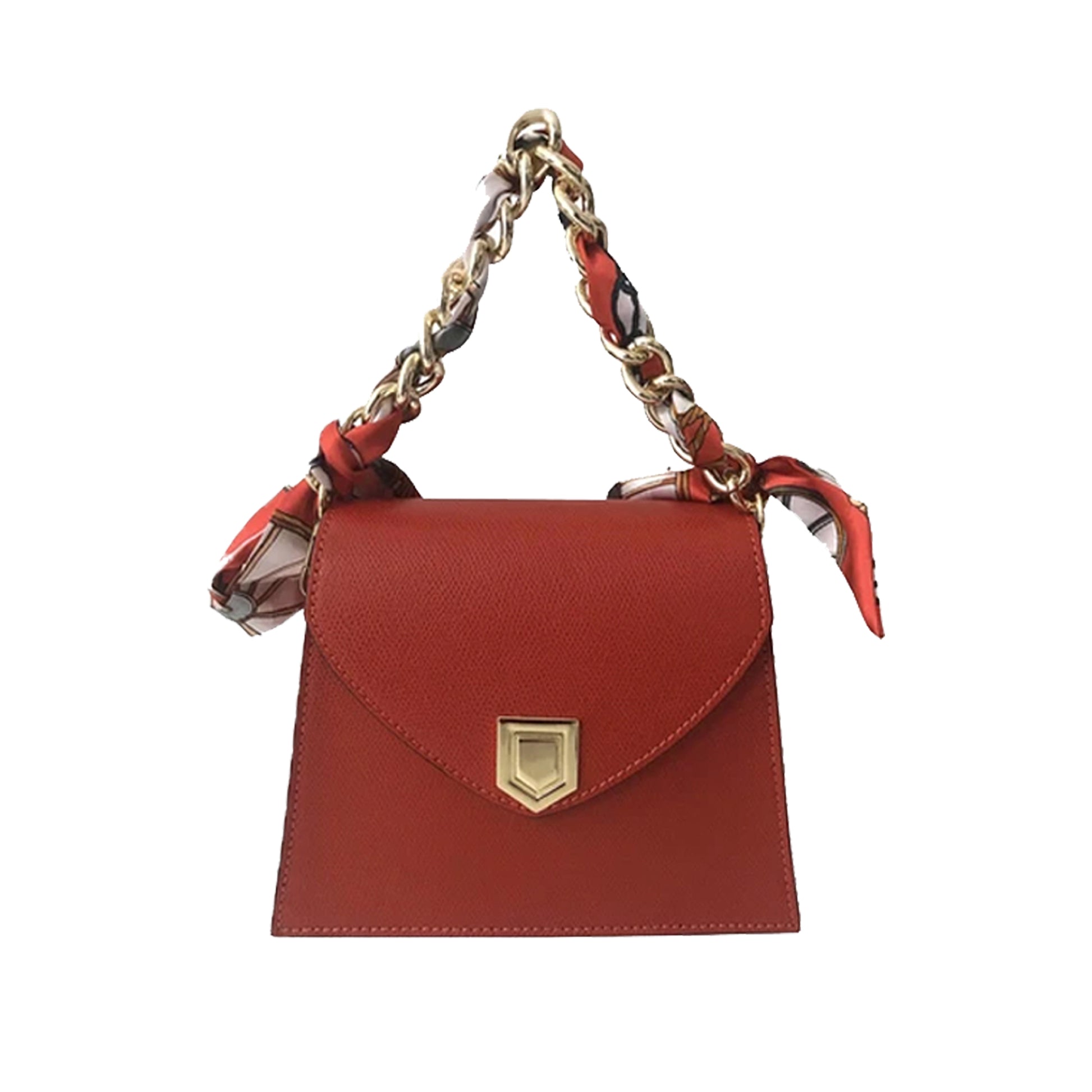Red - Chain Handle Mini Handbag - Removable scarf